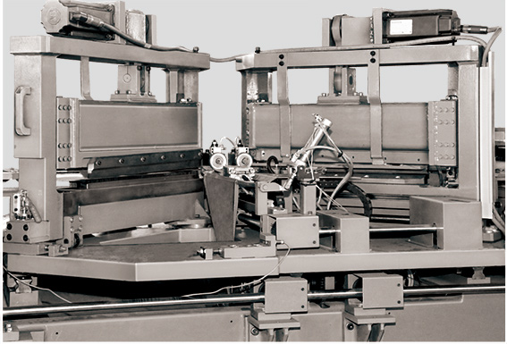 剪床用來剪切鐵心片型所要求的斜角,剪床由伺服電機(jī)、導(dǎo)軌、動(dòng)梁、合金刀具等組成。+45o、-45o各一臺(tái)(其中可旋轉(zhuǎn)為90°直剪)可以剪切 45°、90°、135°斜角。片料剪斷后由排輥裝置傳送至出料臺(tái)。